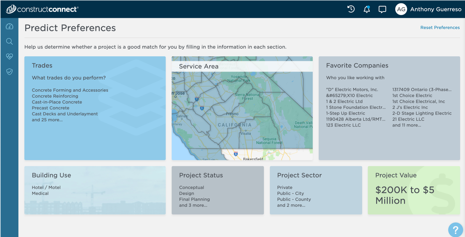 To help subcontractors find relevant opportunities, Predict Preferences let them visually customize the types of projects they wanted.