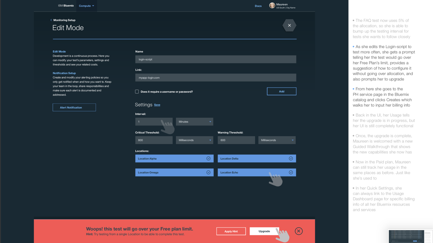 For Hill #1, I designed flexible alert notifications so Maureen’s team wouldn’t need to constantly monitor the dashboard.